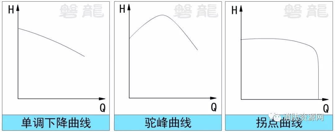四、在消防水泵的選型應用中,不能采用性能曲線(xiàn)單調下降的水泵、不能采用性能曲線(xiàn)呈駝峰形的水泵、不能采用性能曲線(xiàn)有拐點(diǎn)的水泵。
